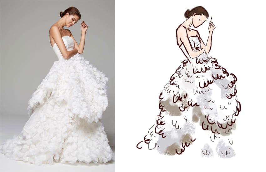 Будуарные настроения мировой моды добрались и до моды свадебной. Перьями украшали коктейльные платья, сумки и даже джинсовые куртки. Но теперь наконец невесомое оперение оказалось там, где оно смотрится наиболее гармонично – на подвенечных нарядах. Решившись на декор из перьев, выбирайте наиболее длинные и пушистые, например, страусиные. Они должны парить над поверхностью платья, как дымка, колыхаться от вашего движения и дуновения ветра. Вдохновляемся образом райской птички.