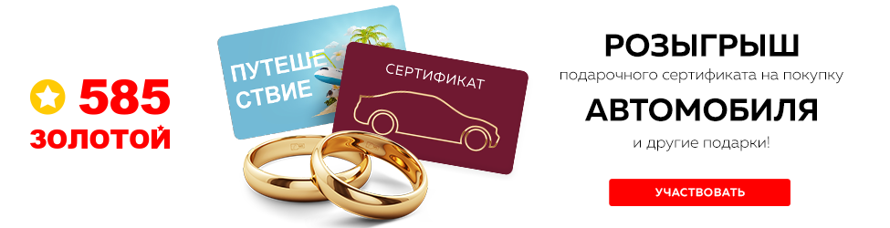 Если вы с женихом смотрите друг на друга и думаете, как же вам повезло в жизни, самое время испытать Фортуну еще раз. Достаточно купить обручальные кольца в сети магазинов 585*ЗОЛОТОЙ – и вы станете участниками глобального розыгрыша, в котором подарки получает каждый: скидка на покупку других ювелирных изделий вам уже гарантирована.
