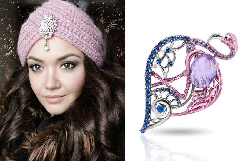 Посмотреть брошь-фламинго из серебра с кунцитом и фианитами >>>