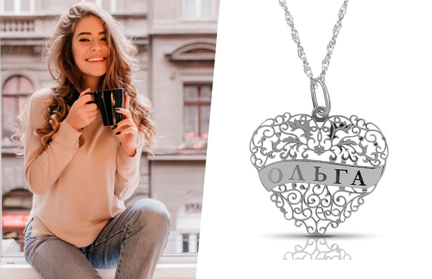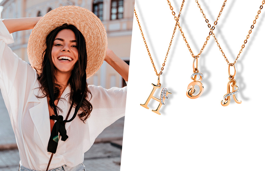 Буквы в украшениях в первую очередь связаны с именем человека. Обычно это первая буква имени или фамилии владельца или же близкого ему человека. Также возможно использование полных инициалов. Например, кольца и медальоны с каллиграфическими буквами многие столетия были востребованы среди королевских семей. Семейный герб чаще всего состоял именно из переплетенных инициалов. Не менее популярны и аксессуары с полным именем – полным или сокращенным вариантом.