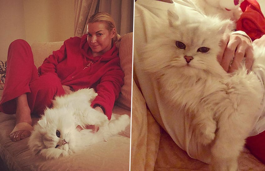 Например, совсем недавно, она решила кота закалить, окунувшись вместе с ним в ледяную купель. С огромным удивлением звезда выяснила, что ее Лакки боится холодной воды. Как все это комментировал кот, история умалчивает.