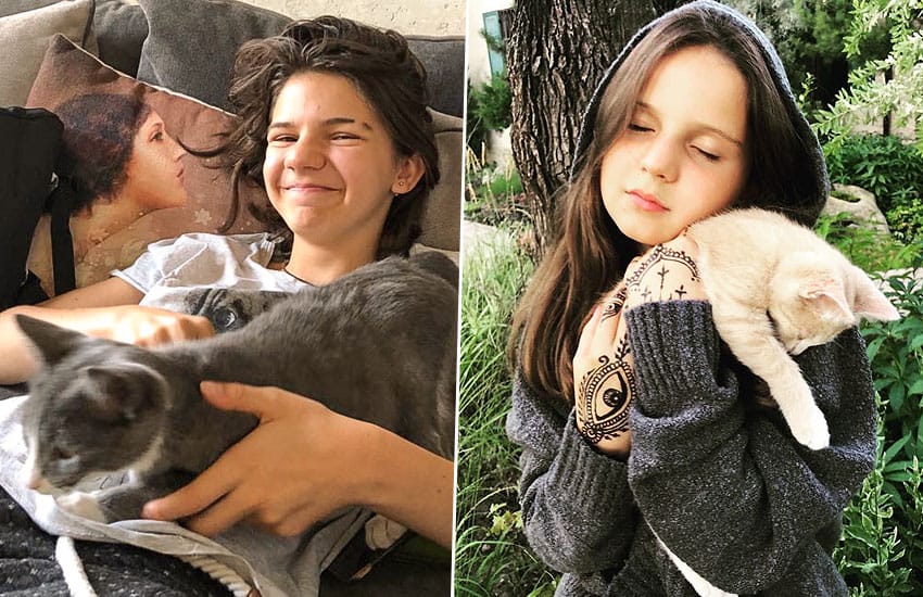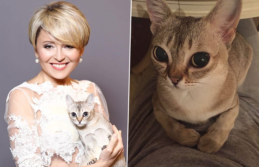 Сингапурская кошка появляется в блогах звездной семьи регулярно: иногда сама, иногда вместе с кем-то из супругов. Наоми-Нюсю взяли из питомника уже взрослой, но привыкала она к новым хозяевам недолго, всего неделю.