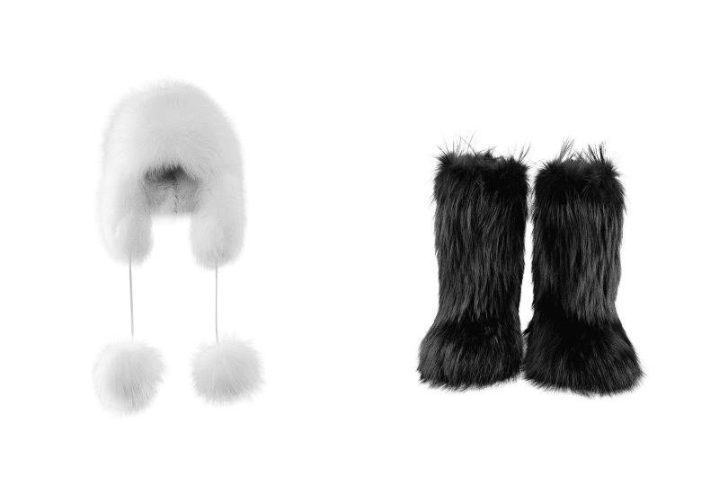 Важной частью коллекции Après-ski стали аксессуары: теплые шапки-ушанки, высокие сапоги из лисьего меха, кашемировые шарфы и меховые наушники розового и бордового цвета. А для любителей спорта есть специальные горнолыжные маски, украшенные норкой.