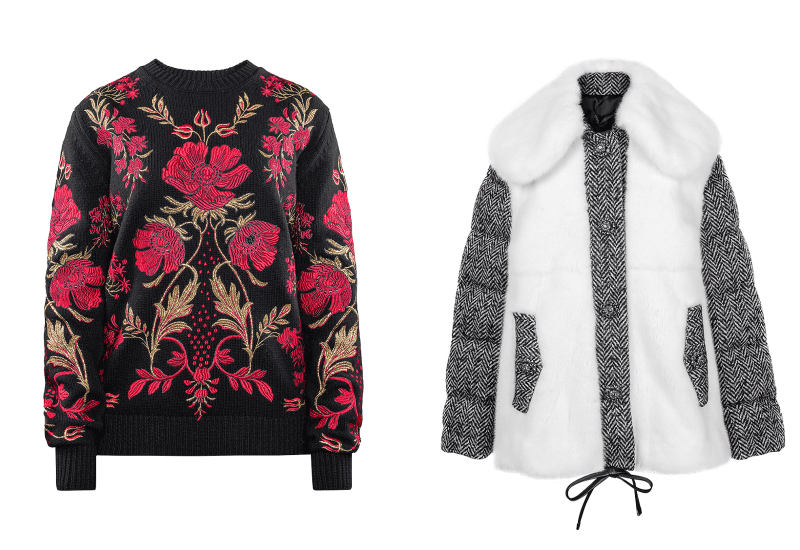 Красивые черно-красные пуховики из жаккарда и парчи, объемные жилеты из норки и овчины, пуловеры из шерсти и свитеры из кашемира – все это вошло в новую линейку одежды. Вещи украшены изящными растительными узорами.