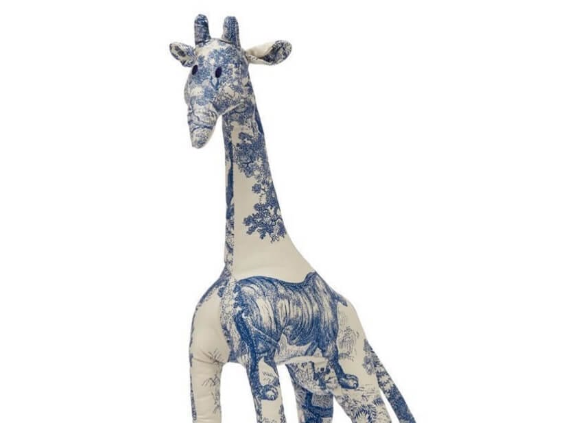 В новую коллекцию вошли милые фигурки слона и жирафа, сделанные из ткани с рисунком Toile de Jouy, т.е. «ткань из Жуи». Это название пришло из XVIII века, когда во Франции появился набивной хлопок с монохромным рисунком природы, цветов или животных. Подобные мотивы нравилось использовать Кристиану Диору. Нынешний креативный директор бренда Мария Грация Кьюри, помня об этом, разработала коллекцию игрушек.