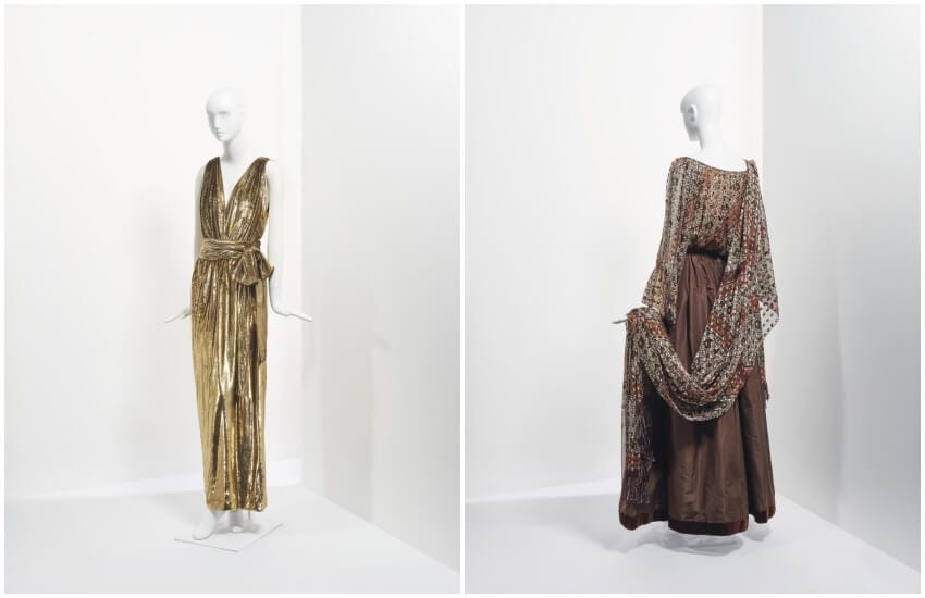 Среди главных экспонатов – расшитое бисером платье (коллекция весна-лето 1969), шерстяной брючный костюм (коллекция кутюрье 1982), драпированое платье золотого цвета (коллекция весна-лето 1995) и роскошная шуба (осенне-зимняя линейка 1997).