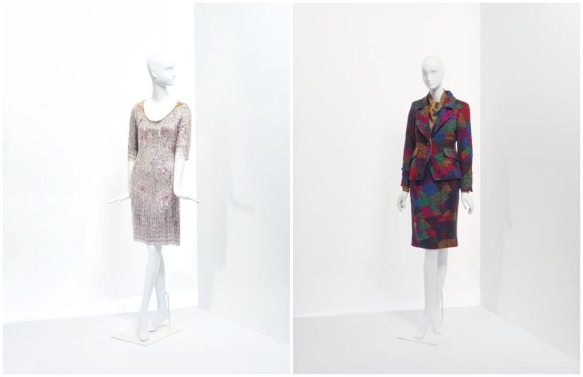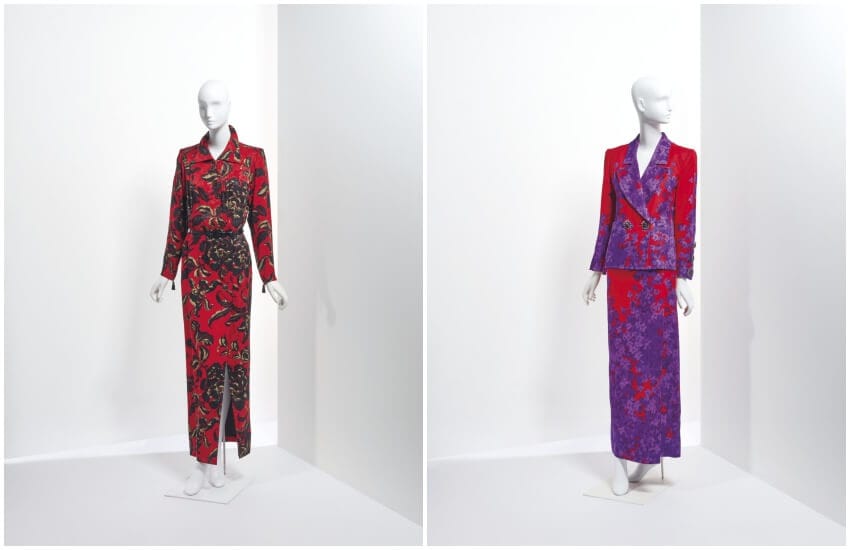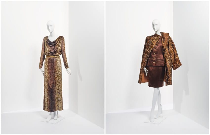 Среди главных экспонатов – расшитое бисером платье (коллекция весна-лето 1969), шерстяной брючный костюм (коллекция кутюрье 1982), драпированое платье золотого цвета (коллекция весна-лето 1995) и роскошная шуба (осенне-зимняя линейка 1997).