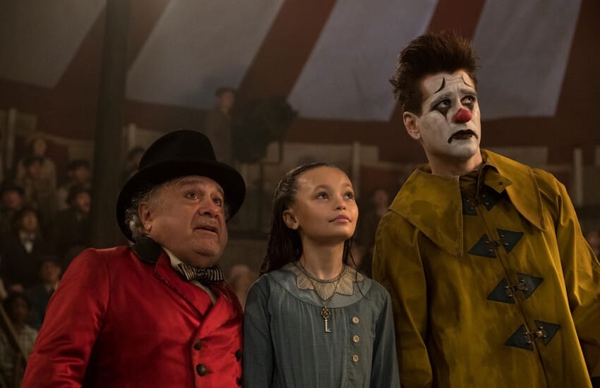 В главных ролях снялись Ева Грин, Колин Фаррелл, Алан Аркин, Майкл Китон и Дэнни Де Вито. Фильм о слоненке с огромными ушами и его жизни в цирке является ремейком знаменитого мультфильма 1941 года. Тогда «Дамбо» заработал Оскар за музыкальное сопровождение.