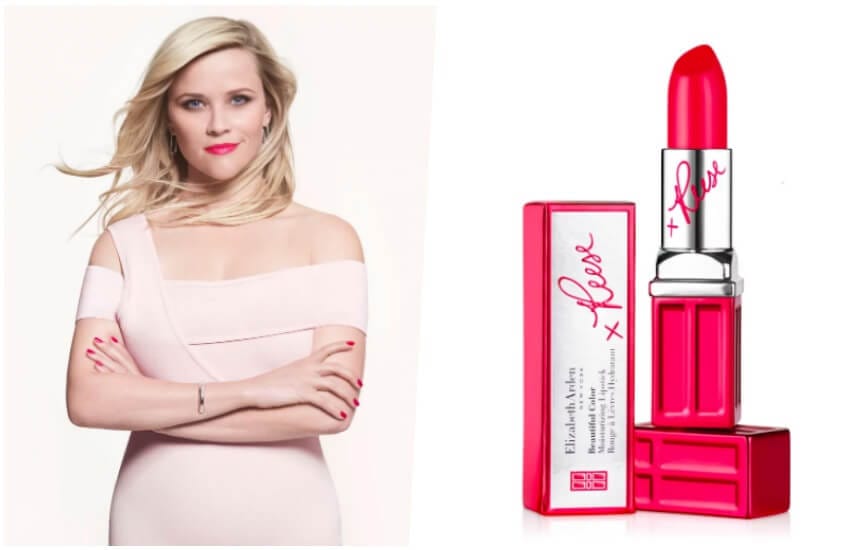 Розовая помада в оттенке Pink Punch будет перевыпущена в обновленном футбляре с автографом Риз. Это оттенок из уже существующей линейки Beautiful Color Moisturizing Lipstick от Elizabeth Arden.