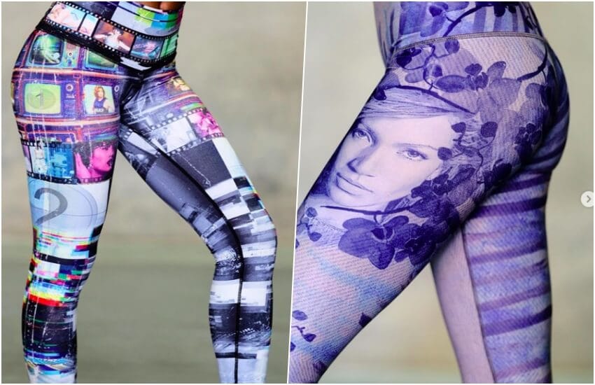 Певица и модель поделилась кадром из фотосъемки в своем Instagram-аккаунте. На снимке Лопес демонстрирует одежду для йоги: черный спортивный бюстгальтер и леггинсы с цветочным принтом и с изображением собственного лица.
