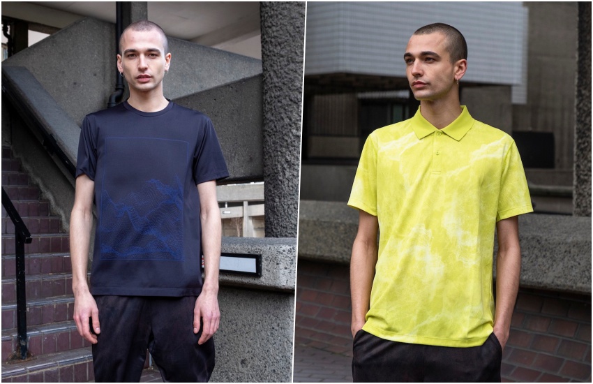 В коллекцию мужской и женской одежды вошли футболки, поло, топы, шорты, леггинсы и ветровки с графичным рисунком, напоминающим текстуру мрамора.