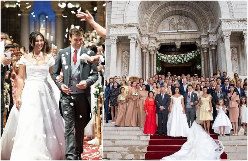 Он женился на своей подруге детства — Мари Шевалье. Свадьба, по традиции состояла из двух частей: гражданской церемонии и более торжественного венчания. Для первой части мари выбрала нетрадиционный наряд — комбинезон с широкими брюками-кюлотами от известного бренда свадебных платьев. Комбинезон выполнен из легкого шелкового крепа, отделан кружевом, имеет деликатный V-образный вырез и открытую спину.