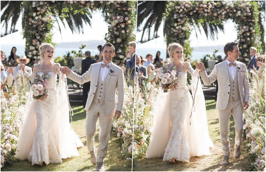 Фотографиями с торжества молодожены практически сразу поделились в соцсетях: можно во всех подробностях рассмотреть платье Элль, созданное свадебным дизайнером Martina Liana. Кстати, за месяц до свадьбы Элль опубликовала на своей страничке несколько платьев бренда, рассказав о будущем событии.