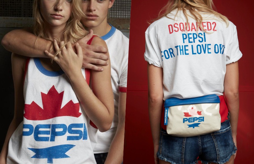 Коллекция уличной одежды Pepsi от Dsquared2 будет носить название «D2XPepsi». В ней 42 предмета одежды и аксессуаров в стиле унисекс: толстовки, футболки, рюкзаки и кроссовки. Логотип Pepsi практически «вписан» в лого бренда: основатели марки, дизайнеры Дин и Дэн Кейтены родом из Канады, поэтому в красно-голубом цвете выполнен кленовый лист. Рекламная кампания вдохновлена стилем 80-90х годов. Капсула # D2XPepsi появится в магазинах весной следующего года.