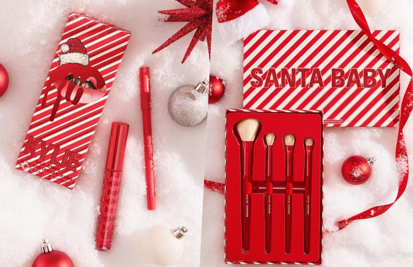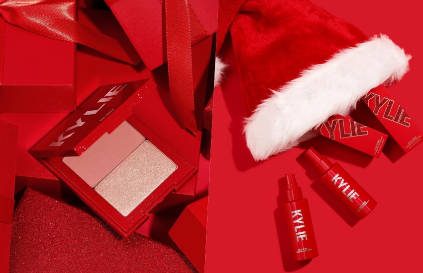 Кайли Дженнер, основательница компании Kylie Cosmetics, выпустила новогоднюю коллекцию — все средства этой линейки упакованы (или выполнены) в красных цветах с блестками. В таком формате будут выпущены: палетка для глаз, блески для губ, карандаши и фиксирующие спреи.