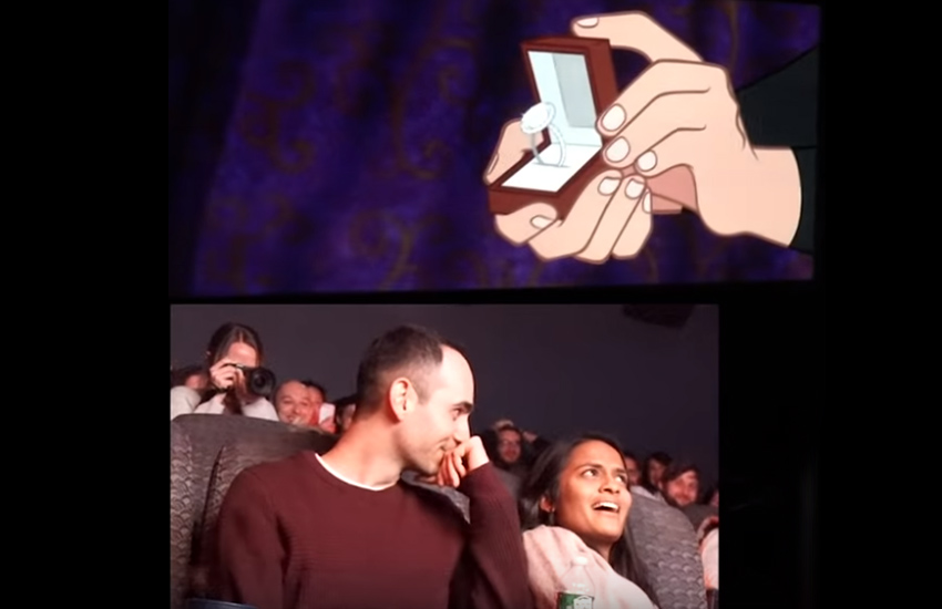 Для этого молодому человеку пришлось арендовать целый кинотеатр в Бруклине. Возлюбленная Лочлера Стхути Дэвид не заподозрила подвоха, когда тот позвал ее в кино на диснеевскую «Спящую красавицу». Не заметила она также родственников и друзей, сидящих в зале: ведь в основном он был заполнен массовкой. Однако настоящий шок у девушки вызвала сцена, в которой принц Филипп делает предложение Авроры. Еще бы: вместо Филиппа в мультфильме на экране предстал ее бойфренд, а вместо Авроры – она сама!