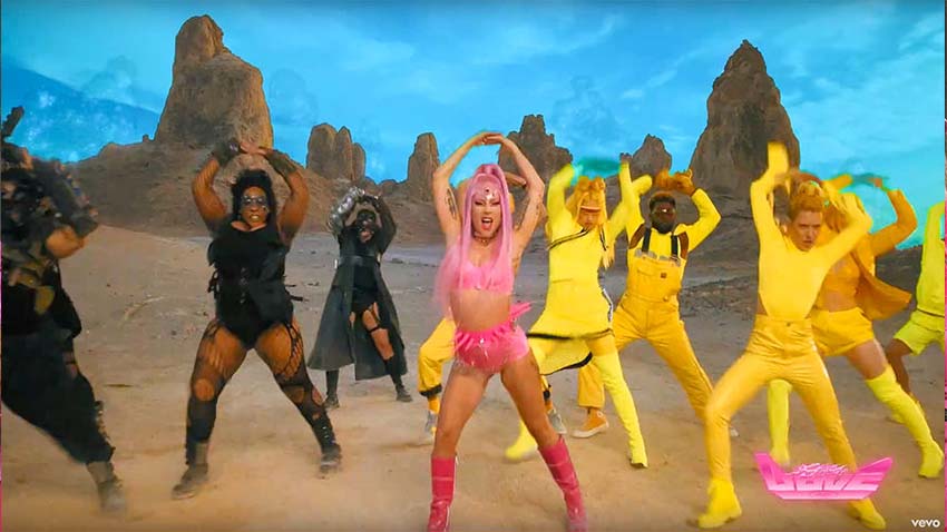 В клипе королева эпатажа становится предводительницей «розовых» – альтруистичного инопланетного племени. С помощью музыки и танцев она мирит разношерстное воинствующее население фантастической планеты и сеет вокруг добро и любовь. Певица примерила несколько футуристичных костюмов разной степени открытости в розово-сиреневой гамме.