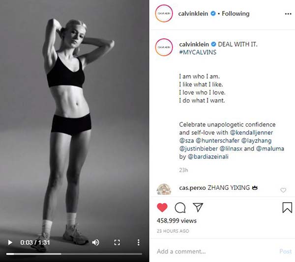 Calvin Klein представил новую рекламную кампанию линий нижнего белья и денима. Ее героями стали Кендалл Дженнер, Джастин Бибер, актриса сериала «Эйфория» Хантер Шафер, певица SZA, рэпер Lil Nas X, китайский актер Чжан Исин и певец Maluma.