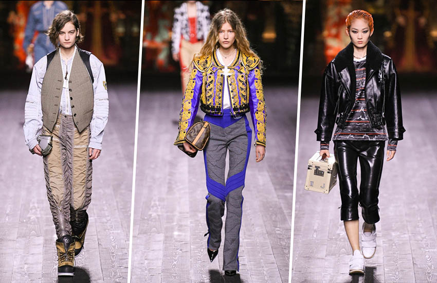 Креативный директор бренда Николя Жескьер вдохновлялся полотнами великих европейских живописцев, созданными с середины XVI до конца XX века. «Мы сами пишем историю, все в нашей жизни – это связь времен», – заявил Жескьер. В своей коллекции он не стремился к тому, чтобы каждый образ соответствовал только одной эпохе. Напротив – Louis Vuitton предлагает одновременно носить викторианские платья со спортивными бомберами и кроссовками на липучках, а сюртуки, расшитые золотом, со спортивными костюмами.