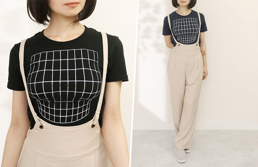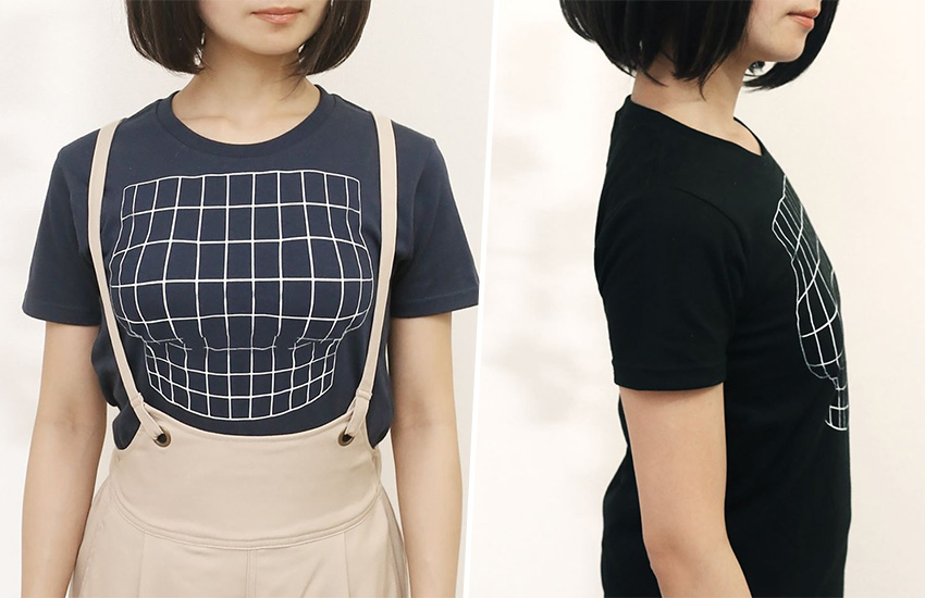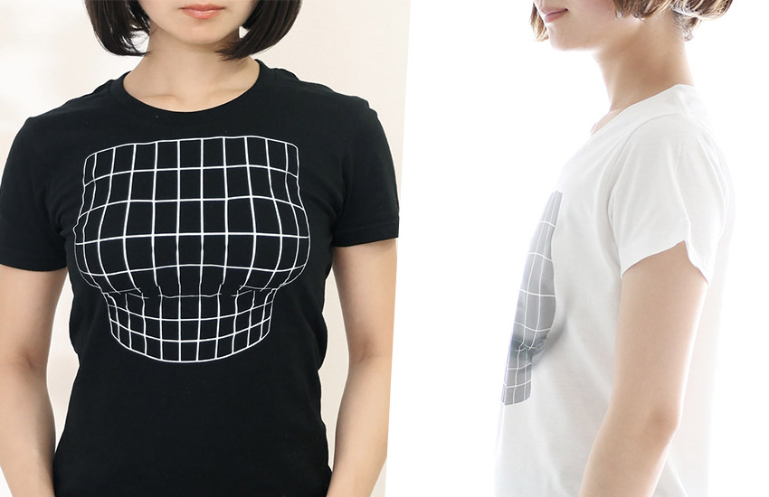 Японский бренд ekoD Works, специализирующийся на производстве оригинальной одежды и украшений, придумал, как помочь девушкам, недовольным размером своего бюста. Модельеры компании создали футболку Illusion Grid , с помощью которой покупательницы могут получить роскошные формы, не прибегая к пластической хирургии.