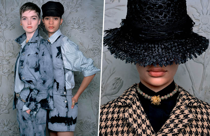 Природные элементы стали лейтмотивом коллекции: цветочные мотивы украсили платья, сумки и украшения, а главным аксессуаром стала плетеная шляпка, отсылающая нас к пасторальной тематике. Поэтическую атмосферу Dior Garden создают натуральные текстуры и обилие принта tie-dye.