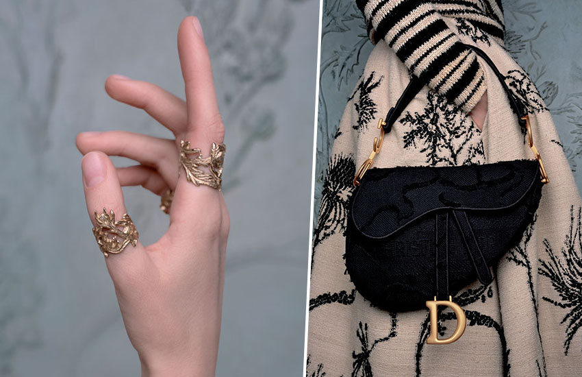 В коллекцию вошли плиссированные юбки, блузы, куртки, джемперы, комбинезоны, тренчи, а также легендарные модели сумок 30 Montaigne и Saddle и новинка – сумка-тоут Catherine. И, конечно же, украшения – кольца, сережки и колье с плетеными элементами.