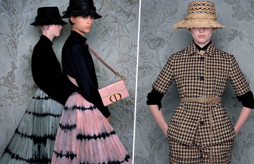 Природные элементы стали лейтмотивом коллекции: цветочные мотивы украсили платья, сумки и украшения, а главным аксессуаром стала плетеная шляпка, отсылающая нас к пасторальной тематике. Поэтическую атмосферу Dior Garden создают натуральные текстуры и обилие принта tie-dye.