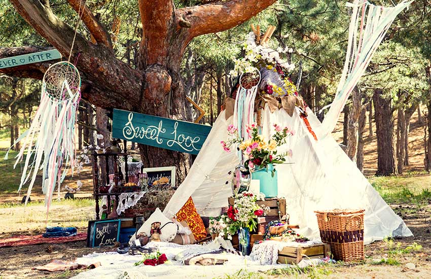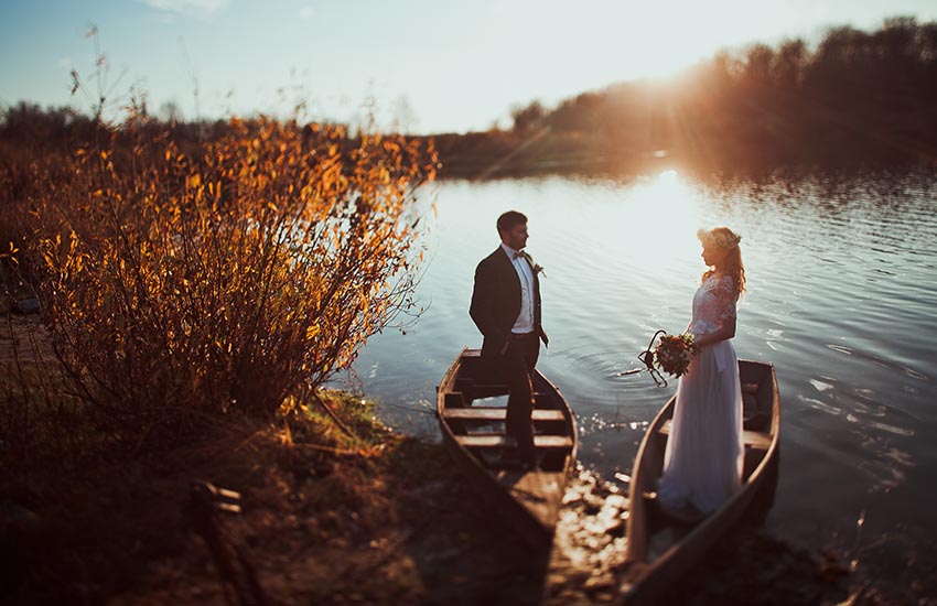 Поскольку Pantone диктует цветовую гамму, которая имеет природные корни, то совершенно логично организовать свадьбу на природе. Конечно же, новый тренд идеально подходит для торжества в популярном сейчас эко-стиле (или стиле рустик). Площадкой может стать поле с копнами сена, уютный сад, лесная поляна, берег реки или озера, или, скажем, сосновый бор под кронами деревьев. Можно выбрать загородный дом или усадьбу с соответствующим антуражем. Прекрасным вариантом станут шатер или деревянный ангар.
