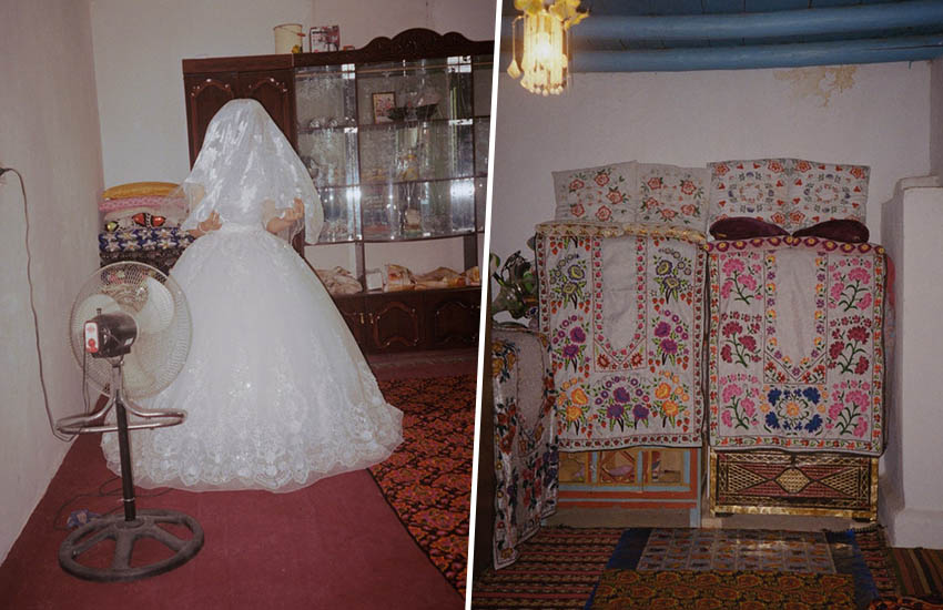 Контраст между многовековыми традициями мусульманской страны и влиянием западных тенденций поражает. Утром в день свадьбы невеста Мачлие отправилась в салон красоты, чтобы сделать макияж «как у Ким Кардашьян». А гости в это время ели традиционный плов и изучали приданое, состоящее из разноцветных мягких матрасов – курпачи, сложенных стопкой. Чем выше стопка в приданом, тем богаче семья. По обычаю жених приберег порцию плова для невесты, чтобы в семье был достаток.
