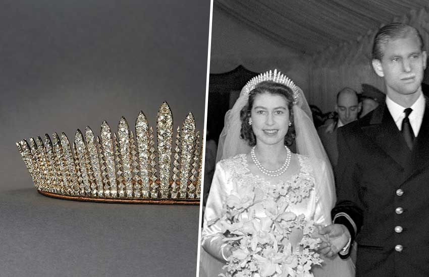 Елизавета II помогла устроить внучке незабываемый праздник: она одолжила ей шикарное винтажное платье из своего гардероба. В платье Norman Hartnell оттенка слоновой кости из тафты, органзы и сатина дюшес, инкрустированном кристаллами, королева была на премьере фильма «Лоуренс Аравийский» 10 декабря 1962 года. Королевские портные немного переделали платье – в частности, добавили актуальные сейчас рукава-фонарики и изменили крой подола, сделав его менее пышным. А главным штрихом образа невесты стала бриллиантовая тиара-франж Марии Текской, в которой выходила замуж сама Елизавета 73 года назад, а после – ее единственная дочь Анна.