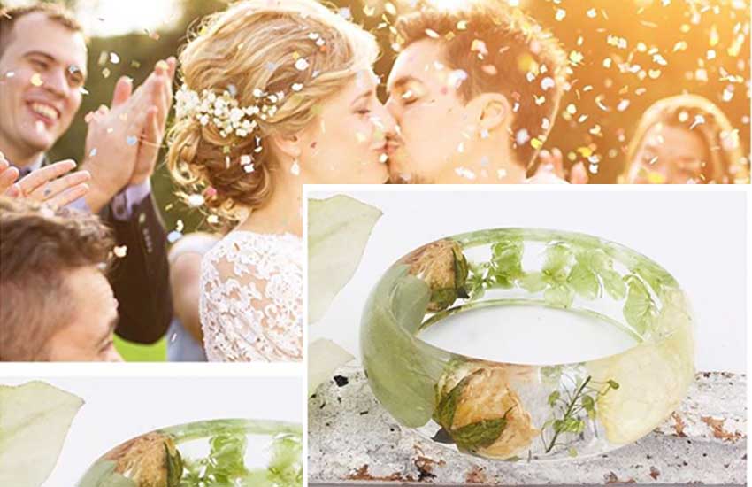 Собственное, так и было создано первое украшение для проекта keepyourflowers – свой свадебный букет Кристина превратила в браслет, запив высушенные цветы эпоксидной смолой.