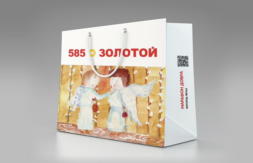 В начале 2021 года подарочные пакеты «585*ЗОЛОТОЙ» украсят трогательные рисунки подопечных «Детской миссии». На них растут сказочные цветы, сияют звезды, а маленькие ангелочки дарят друг другу подарки.