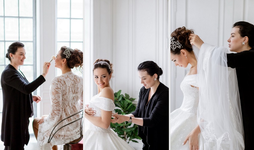 Это допустимо в случае если невеста будет делать прическу и макияж у проверенного мастера. Если же невеста обращается к стилисту впервые- обязательно необходимо провести репетицию прически и макияжа за 2-4 недели до торжества – так будет 100% уверенность в свадебном образе, а также репетиция- это прекрасная возможность познакомиться с мастером лично.