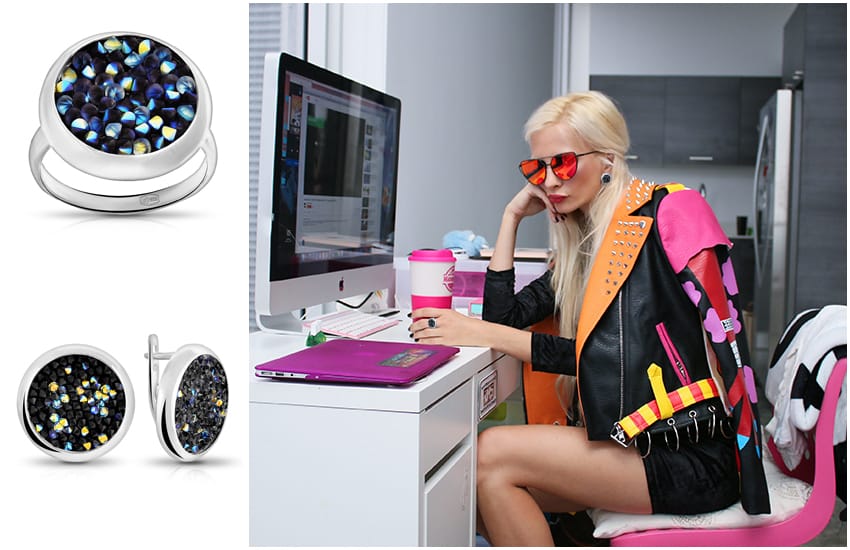 Хочу такие! >> крупные серьги, имитирующие «тоннели» в ушах, стильное кольцо из серебра с кристаллами Swarowski.