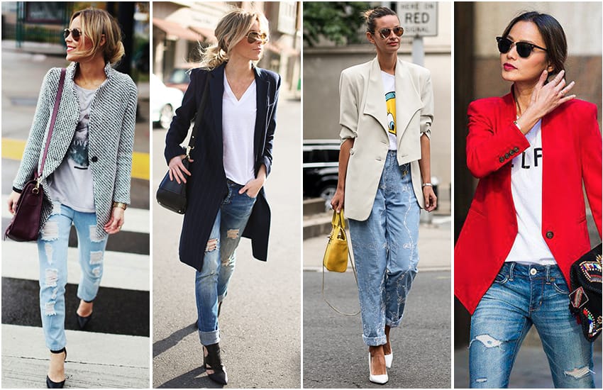 Продолжая тему предыдущего пункта, подадим вам еще идею, как комбинировать слои одежды. Вместо стандартных блузок и рубашек надевайте время от времени под жакет футболки. Они делают образ более молодым и спортивным, но и на работе вполне уместны.