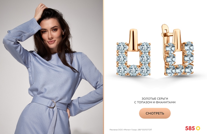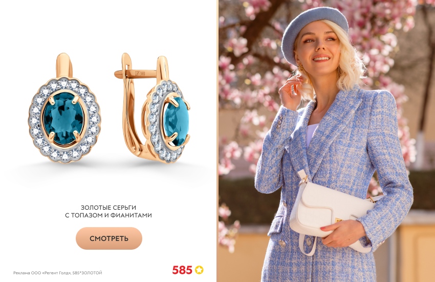 Пусть твое украшение объединяет сразу несколько ювелирных трендов. Цветные камни + блеск кристаллов + внушительные размеры – вот идеальная формула аксессуара для настоящей it-girl. Топазы в обрамлении кристаллов «подсветят» лицо, выступая в роли драгоценного хайлайтера, и подчеркнут красоту глаз любого цвета, как голубых, так и темных.