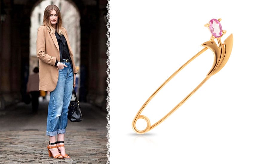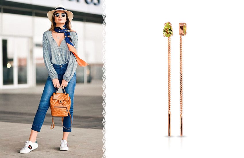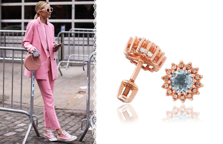 А беспроигрышный аксессуар под костюм – серьги-пусеты, они подходят при любой форме лацкана и декольте.