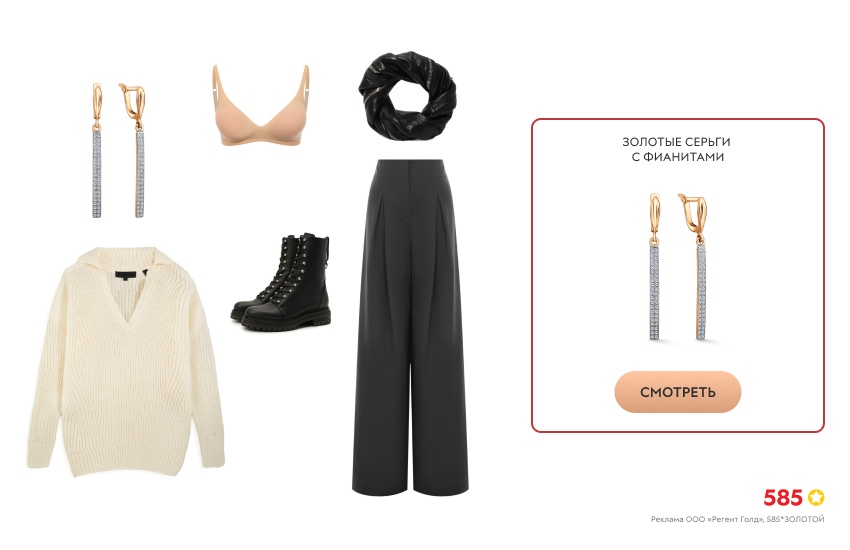 Спокойные базовые цвета и простые силуэты широких брюк и свободного пуловера приправим стильными «фишками», например, броскими украшениями или широкой резинкой для волос, как это было модно в нулевые годы. V-образный вырез пуловера позволяет показать красивое декольте – обязательно воспользуйтесь этим, добавив модное колье с кристаллами или эффектную подвеску.