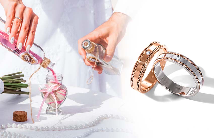 Суть обряда в следующем: жених и невеста пересыпают песок двух разных цветов в общий сосуд, чтобы получился причудливый разноцветный узор. Считается, что как смешавшийся песок разных оттенков невозможно разделить, так и жизни жениха и невесты навеки сплелись в одно целое благодаря любви.