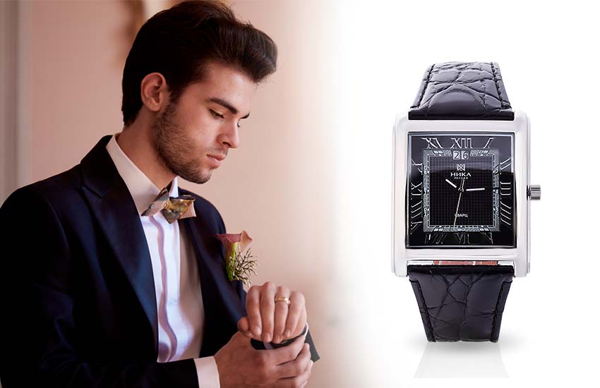 – часы. В случае классического образа оптимальным вариантом будут механические часы с ремешком из натуральной кожи в строгом черном стиле. А вот под смокинг или фрак часы не надевают.