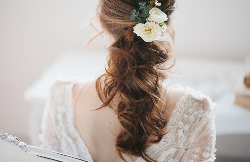 Если к концу вечера локоны «опали», из них можно заплести объемную косу, украсив ее живыми цветами из подаренных букетов. Можно приподнять прическу с помощью аксессуаров для фотографий: губы «на палочке» или надпись «love», воткнутая в небрежный пучок, будет выглядеть забавно и мило.