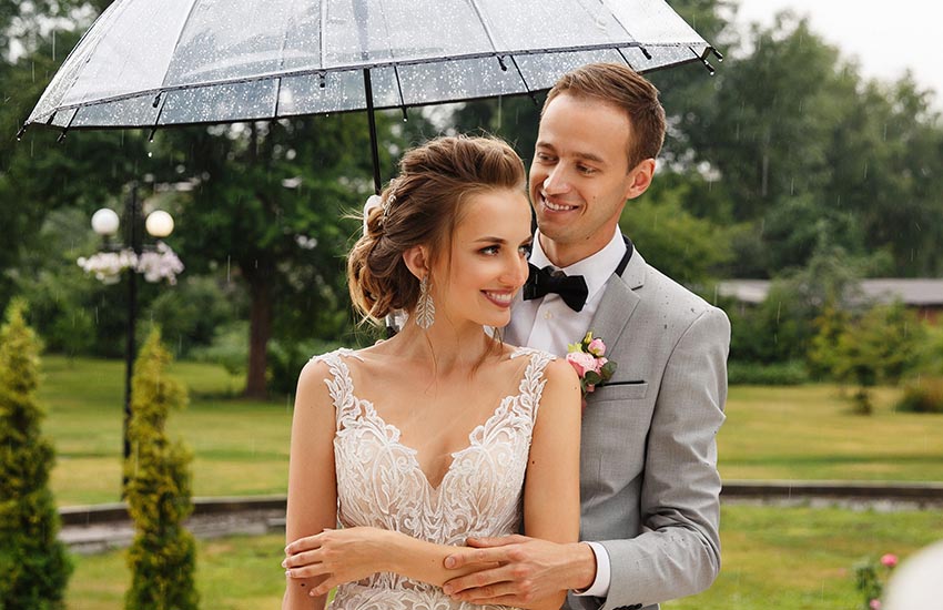 Для фотосессии всегда лучше всего иметь свободу маневра и обговорить с фотографом разные локации – тогда молодоженам гарантированы приятные фотографии независимо от погоды. Если неожиданность застала в процессе съемки, рассмотрите нестандартные варианты, они только придадут свадьбе индивидуальность: в качестве декораций подходит и заправка, и ближайшее кафе, и троллейбус, а можно, в конце концов, танцевать и целоваться под дождем – как в кино.