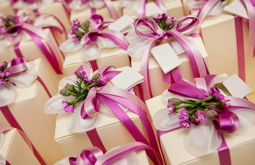 Все гости уходят со свадьбы с красивыми коробочками, в которых лежит пять круглых конфет-драже. Когда-то эти коробочки изготавливались из серебра или хрусталя, на современных же свадьбах распространены более демократичные варианты (например, перевязанные ленточками мешочки). В любом случае, эти красивые контейнеры с датой свадьбы и именами новобрачных принято хранить как память о торжестве. Что касается содержимого, то обычно кладут глазированный миндаль – пять конфет символизируют качества, которых должно быть у каждого с лихвой: здоровье, счастье, богатство, долголетие, плодовитость и духовность.